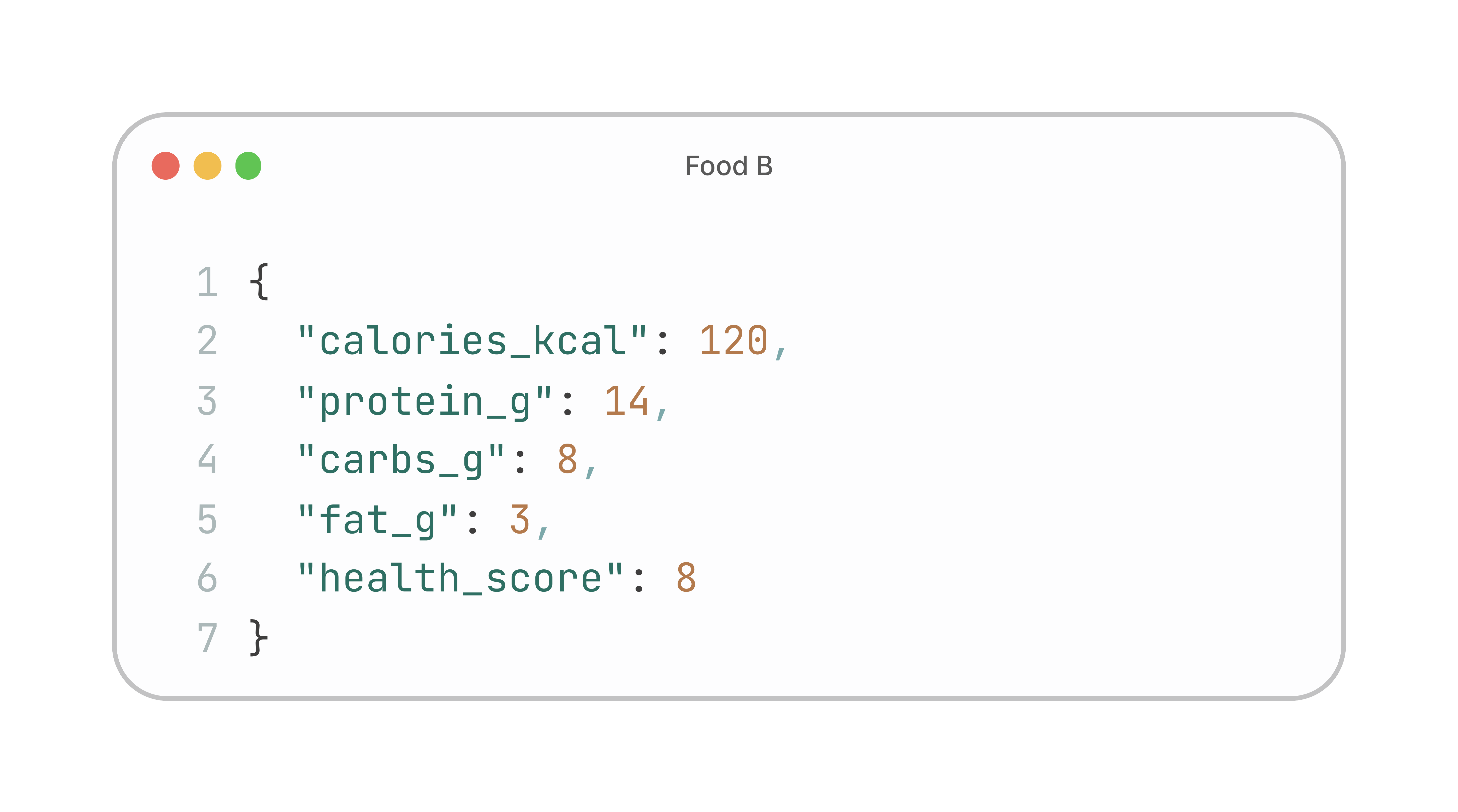 Building a food database takes months—or years. NutritionSignals gives you instant access to 100M+ food records so you can launch tracking, grocery, recipe, or health apps faster.