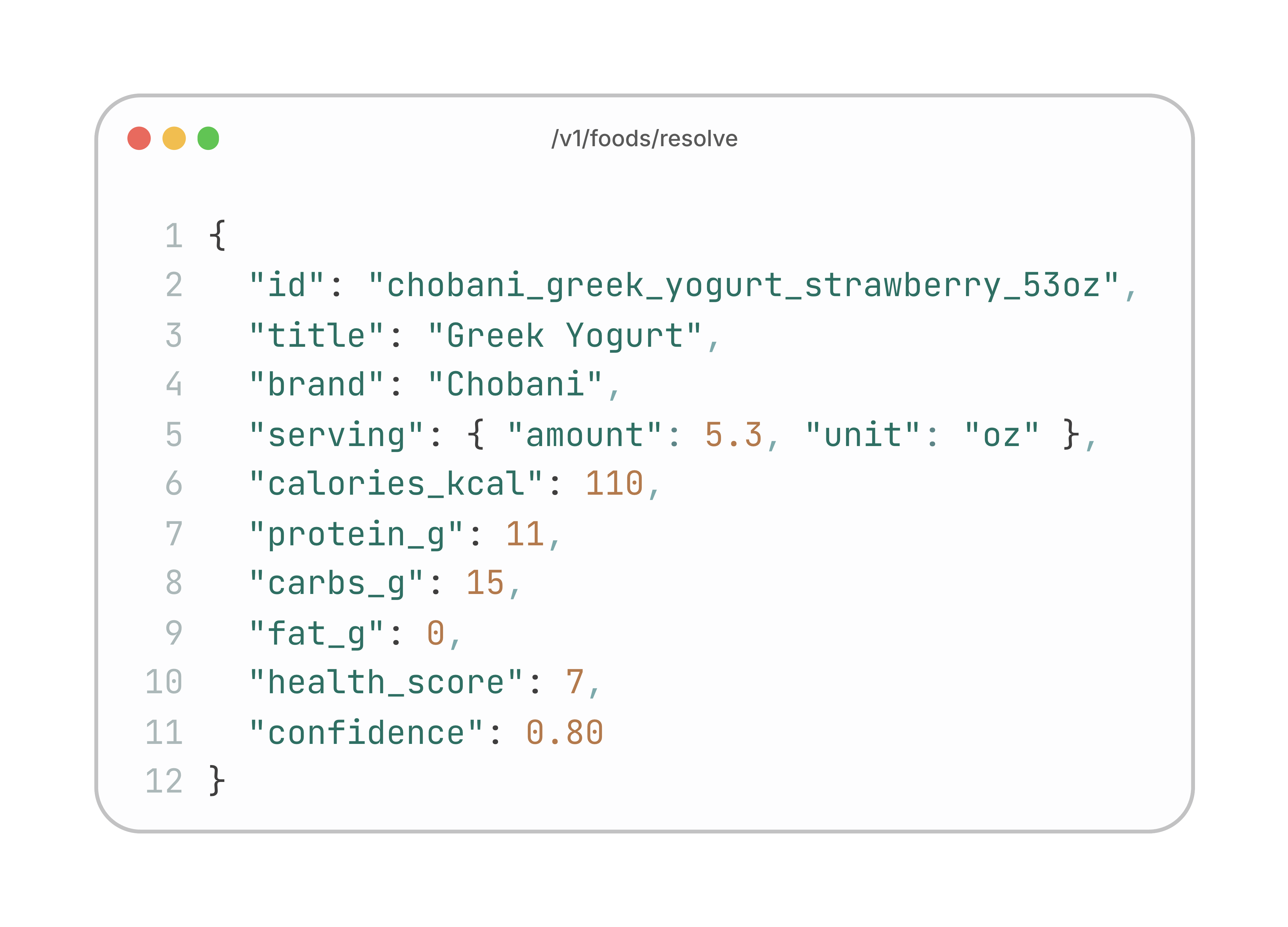 Search, normalize, and serve nutrition across millions of foods and dishes with consistent fields and predictable performance.